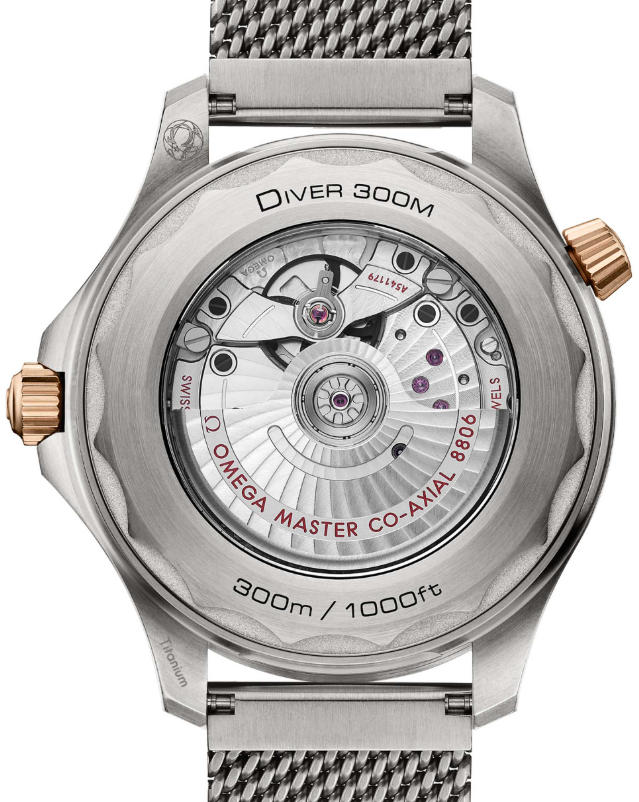 The cheap fake Omega Seamaster Diver 300M watches in titanium and bronze gold is priced at $9,900 USD on a rubber strap (reference 210.92.42.20.10.001) and $10,700 USD on the titanium mesh bracelet (reference 210.90.42.20.10.001)
